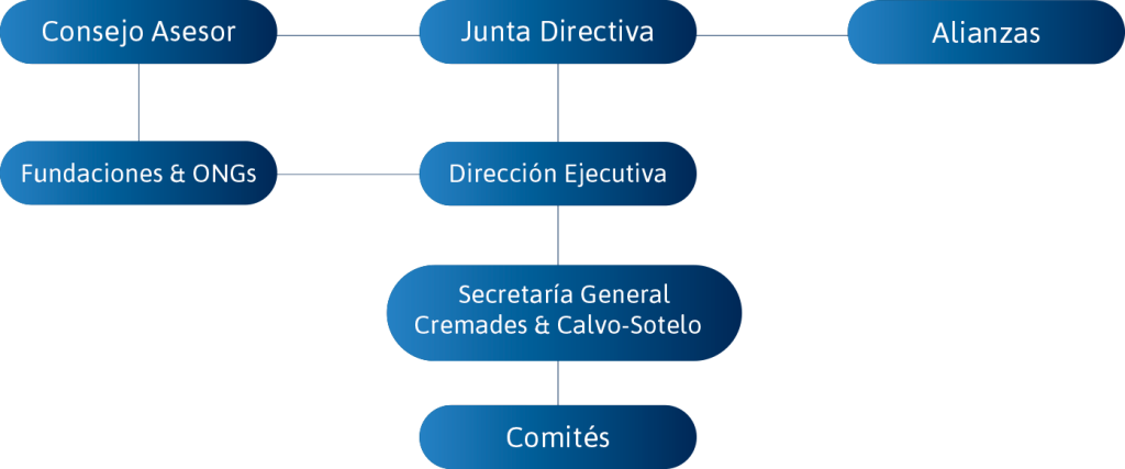 Este proyecto ha sido impulsado por una Junta Promotora compuesta por Santiago Ulloa (Presidente), Adolfo Ramírez (Vicepresidente), Juan Carlos Gutiérrez (Vocal) y Adriana Álvarez (Directora Ejecutiva), correspondiendo su Secretaría General al Despacho de Abogados Cremades & Calvo-Sotelo.